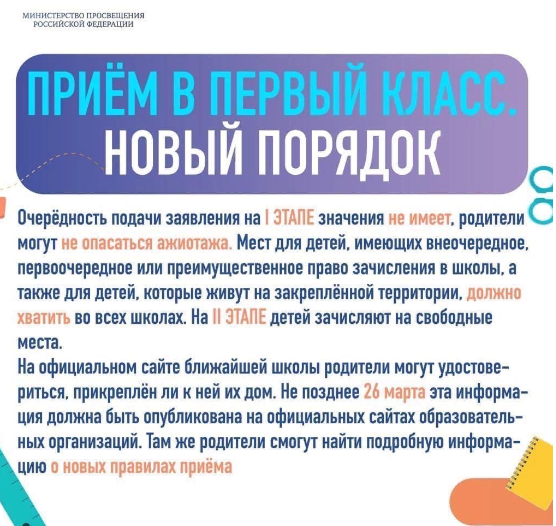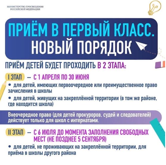 Новости Инфографику по приему на обучение в 1 класс 02.04.2021 / Министерство просвещения Российской Федерации выпустило полезную инфографику по приему на обучение в 1 класс 1 апреля начинается запись детей в первый класс по новым правилам. О том, что изменилось в этом году, читайте в инфографике.
