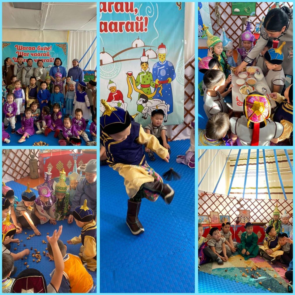 №4 «Салгал» аттыг уруглар садынын улуг болуунге, «Алдан ала чылгылыг Алаадай-мергеннин аалынга Шагаа байырлалы» деп оюн-тоглаа болуп эрткен. Шагдан тура шагааны канчаан уткуп, байырлап чораанын, аас-чогаалы кайы хире байлагын, тыва ак чемнерни чууден кылып турар база ол ышкаш чараш-чаагай чанчылдарны сагып билирин оореткен. Оюн- тоглаа уезинде уруглар аас-чогаалы-биле маргылдаалажып, тевектежип, аьт чарыштырып, Аскак-кадайлажып тондургеннер.