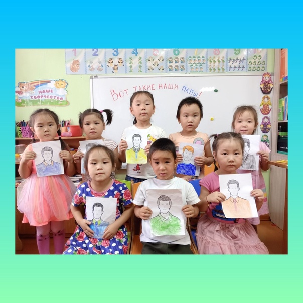 В рамках празднования Дня отца воспитанники старшей группы «Непоседы» МБДОУ д/с N4″ Салгал» с. Эрзин, нарисовали портрет своих отцов.
